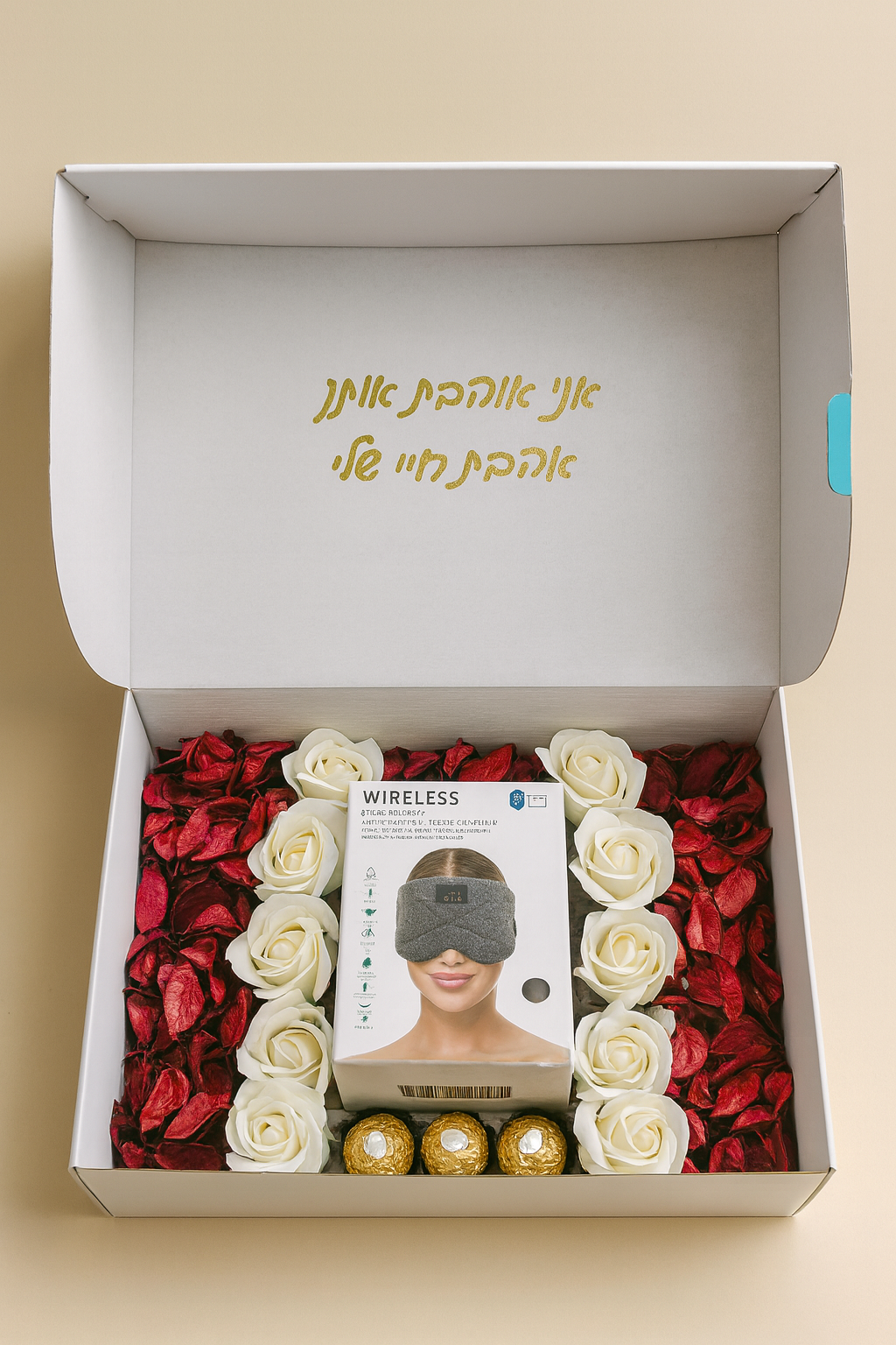 רוצים לתת למישהו אהוב רגע אמיתי של שקט? מסכת בלוטות' חכמה לרוגע, מוזיקה ומדיטציה בתוך מארז פרחים ושוקולד – מתנה שנראית וואו וגורמת להרגיש שממש חשבו על כל פרט.