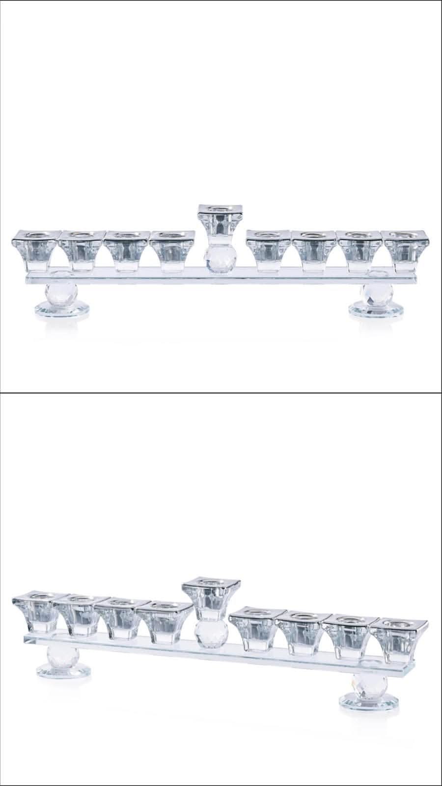 • ✨ חנוכיית זכוכית בעבודת עיצוב נקייה ואלגנטית.