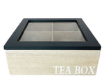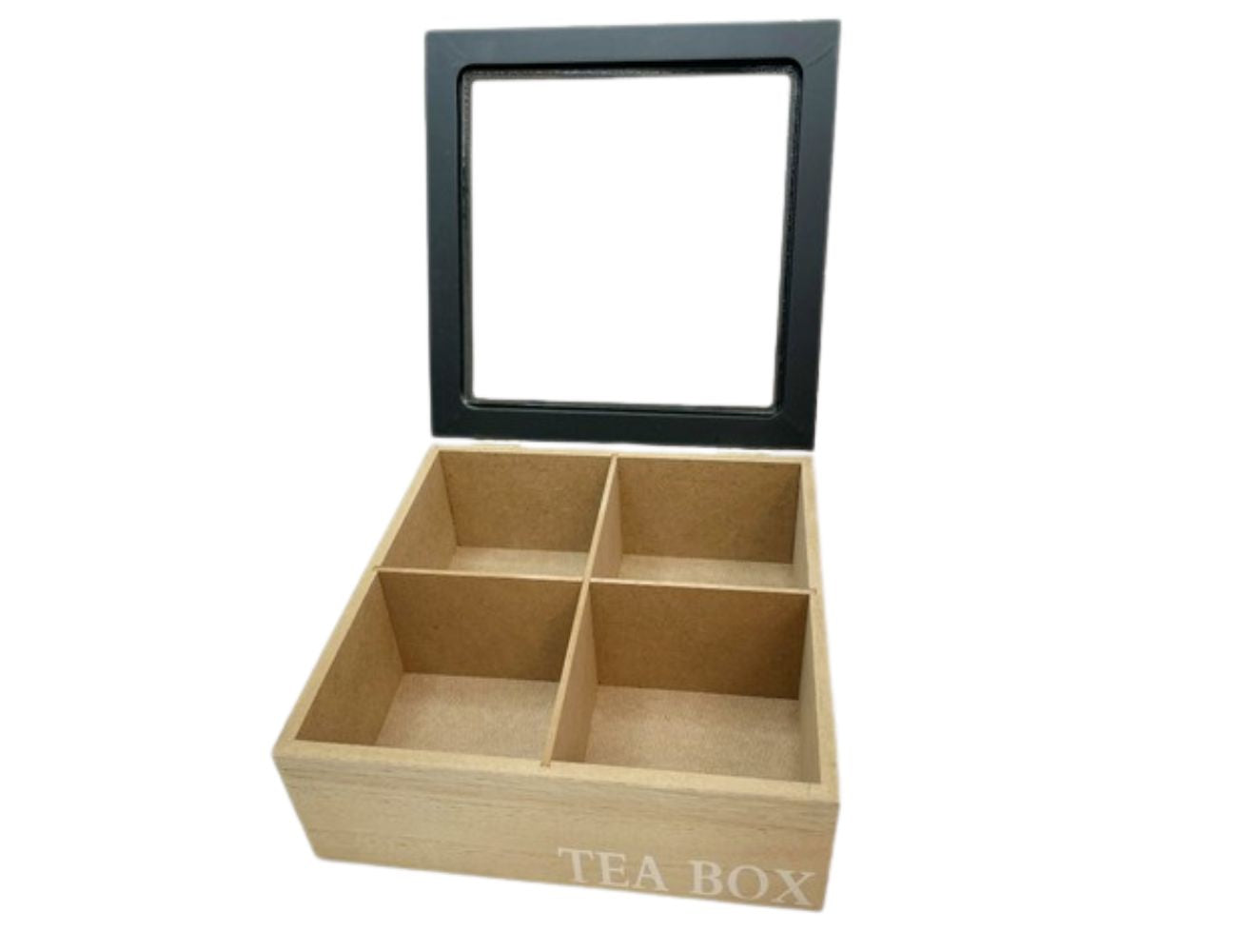 "TEA Box" - המארז האידיאלי לחובבי התה! מארז עץ טבעי בעל 4 תאים, מלווה בקופסת עץ עם מכסה שקוף מזכוכית. המארז המושלם לאחסון והצגת מבחר תיונים בסטייל ובקלות.
